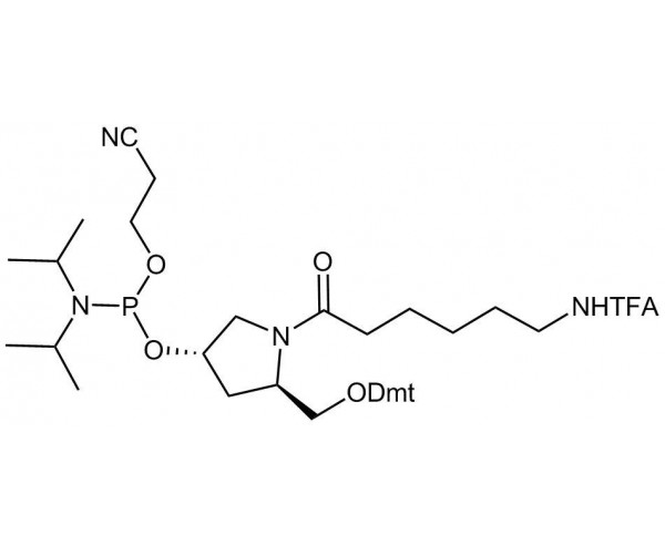 (3R,5S)-5-((bis(4-methoxyphenyl)(phenyl)methoxy)methyl)-1-(6-(2,2,2-trifluoroacetamido)hexanoyl)pyrrolidin-3-yl(2-cyanoethyl)diisopropyl phosphoramidite |