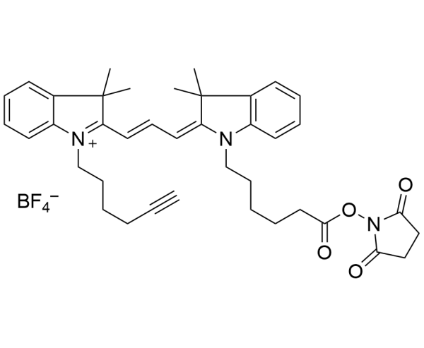 2-((E)-3-((E)-1-(6-((2,5-dioxopyrrolidin-1-yl)oxy)-6-oxohexyl)-3,3-dimethylindolin-2-ylidene)prop-1-en-1-yl)-1-(hex-5-yn-1-yl)-3,3-dimethyl-3H-indol-1-ium tetrafluoroborate